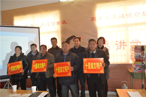 在對棗樹溝的幫扶活動中,公司積極幫助該村開展精神文明創建工作,并結合滎陽市今年開展“修身行善 明禮守法”全民行動,公司向棗樹溝村提供幫扶資金6萬元,幫助其進行了道德講堂、志愿者服務等活動場所的打造,制作了各項制度并上墻;2015年12月30日,公司幫扶工作隊趕赴棗樹溝村參加該村精神文明建設表彰大會,對該村精神文明建設中22個“十星級文明戶”、10名好婆婆、10名好兒媳、10名好妯娌等先進個人進行頒獎,并參加該村的道德講堂活動。此次活動使社會主義核心價值觀深刻融入到村民的生產生活和精神世界,形成全體村民的修身行善共識和明禮守法自覺,為促進棗樹溝村經濟健康發展、構建美麗鄉村打下良好根基。