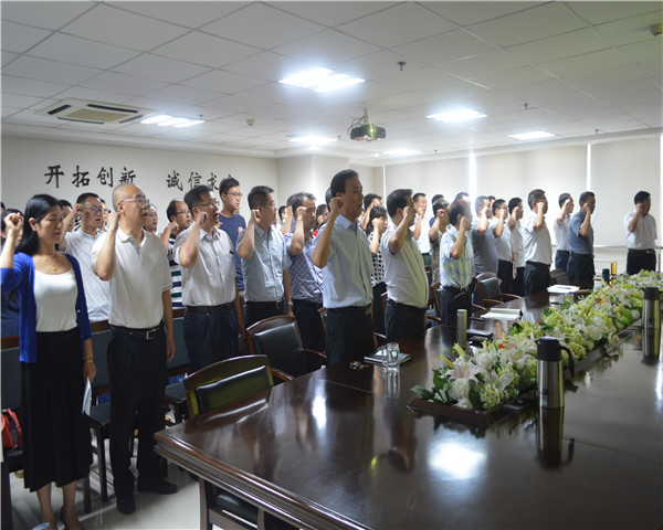 其次,由集團公司機關一支部書記、綜合管理部經理祁紅軍同志帶領大家重溫入黨誓詞。全體黨員起立,右手握拳,高舉耳側,凝視黨旗,宣讀入黨誓詞,莊重神圣,擲地有聲。