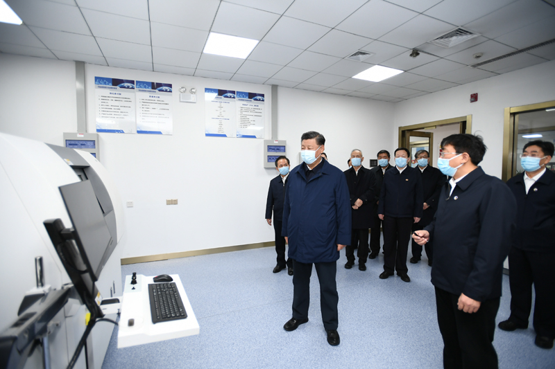 10月22日下午,中共中央總書記、國家主席、中央軍委主席習近平在山東省濟南市主持召開深入推動黃河流域生態保護和高質量發展座談會并發表重要講話。這是座談會前,習近平21日下午在東營市勝利油田勘探開發研究院頁巖油實驗室考察自主創新情況。新華社記者 謝環馳 攝