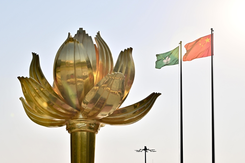 澳門(mén)特別行政區(qū)政府隆重舉行升旗儀式,慶祝澳門(mén)回歸祖國(guó)25周年(2024年12月20日攝)。新華社記者 朱煒 攝