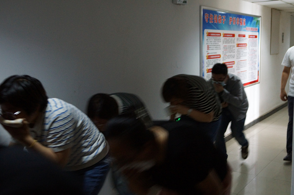 講解培訓后在公司所在樓層進行了火災疏散逃生演練,通過模擬樓層發現火情,公司全員沿疏散標志信號指引,經消防步梯迅速疏散到達安全位置進行了演練,演練結束后對涉及到的標志信號燈、應急照明及通風設備等器材的功能及使用進行了講解。