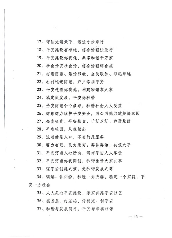 平安兩字重千斤,社會穩定得民心。 創建平安人人有責,構建和諧人人參與。